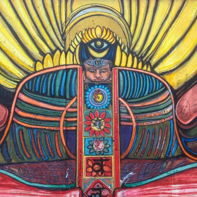 🖼: East-Side-Gallery, Berlin. Ausschnitt aus dem Bild: Sieben Stufen der Erleuchtung von Narenda Kumar Jain.